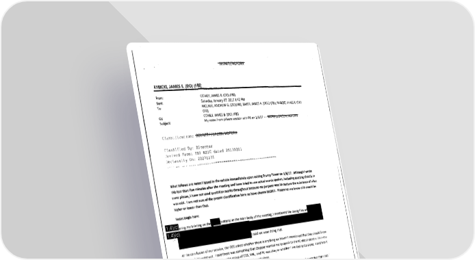 eezqFIBEiq'fiAD;' /HOF61t!J At about this point, he turned to what he called the "golden showers thing" and recounted much ofwhat he had said previously on that topic. He repeated that it was a complete fabrication and "fake news." I explained again why I had thought it important that he know about it. I also explained that one of the reasons we told that the media, CNN in particular, was telling us they were about to run him was with it. He said it b.othered him if his wife thought there was even a one percent 1n any respect. He said he had spoken to people who had been on chance it was true Miss Universe t;rip with him and they had reminded him that he didn't stay over the night in Russia tor (hat. He said he arrived in the morning, did events, then showered and dre!lped for the pageant at the hotel (he didn't say the hotel name) and left for the pagjeant. Afterwards, he returned only to get his things because they departed for New