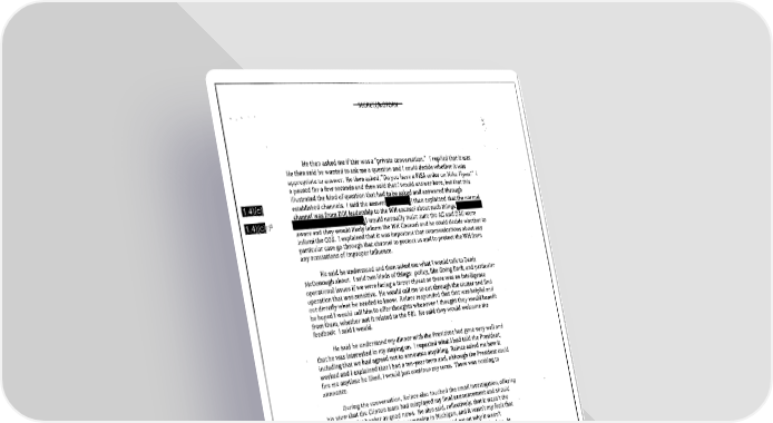 James Comey Memos Page 7 Page 9SECRET/irrJ8FORfrJ He then asked me if this was a "private conversation." I replied that it was. He then said he wanted to ask me a question and I could decide whether it was 1111&1