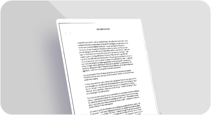 James Comey Memos Page 10 Page 12UNCLASSIFIED/ /FOUO 11nd"ssitled document. I will be limited In how I describe what I said ncxtj. I then (•xplnined why