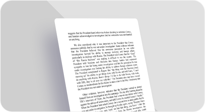 suggests that the President heard otherwise before deciding to terminate Comey, and Sanders acknowledged to investigators that her comments were not founded on anything. We also considered why it was important to the President that Comey announce publicly that he was not under investigation. Some evidence indicates that the President believed that the erroneous perception he was under investigation harmed his ability to manage domestic and foreign affairs, particularly in dealings with Russia. The President told Comey that the “cloud” of “this Russia business” was making it difficult to run the country. The President told Sessions and McGahn that foreign leaders had expressed sympathy to him for being under investigation and that the perception he was under investigation was hurting his ability to address foreign relations issues. The President complained to Rogers that “the thing with the Russians [was] messing up” his ability to get things done with Russia, and told Coats, “I can’t do anything with Russia, there’s things I’d like to do with Russia, with trade, with ISIS, they’re all over me with this.” The President also may have viewed Comey as insubordinate for his failure to make clear in the May 3 testimony that the President was not under investigation. Other evidence, however, indicates that the President wanted to protect himself from an investigation into his campaign. The day after learning about the FBI’s interview of Flynn, the President had a one-on-one dinner with Comey, against the advice of senior aides, and told Comey he needed Comey’s “loyalty.” When the President later asked Comey for a second time to make public that he was not under investigation, he brought up loyalty again, saying “Because I have been very loyal to you, very loyal, we had that thing, you know.” After the President learned of Session’s recusal from the Russia investigation, the President was furious and said he wanted an Attorney General who would protect him the way he perceived Robert Kennedy and Eric Holder to have protected their presidents. The President also said he wanted to be able to tell his Attorney General “who to investigate.” In addition, the President had a motive to put the FBI’s Russia investigation behind him. The evidence does not establish that the termination of Comey was designed to cover up a conspiracy between the Trump Campaign and Russia: As described in Volume I, the evidence uncovered in the investigation did not establish that the President or those close to him were involved in the charged Russian computer-hacking or active-measure conspiracies, or that the President