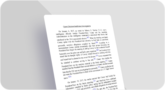 Opens Election-Interference Investigations On January 6, 2017, as noted in Volume II, Section II.A.4, supra, intelligence officials briefed President-Elect Trump and the incoming Administration on the intelligence community’s assessment that Russia had 107 interfered in the 2016 presidential election. When the briefing concluded, Comey spoke with the President-Elect privately to brief him on unverified, 108 personally sensitive allegations compiled by Steele. According to a memorandum Comey drafted immediately after their private discussion, the President-Elect began the meeting by telling Comey he had conducted himself 109 honorably over the prior year and had a great reputation. The President-Elect stated that he thought highly of Comey, looked forward to working with him, 110 and hoped that he planned to stay on as FBI director. Comey responded that 111 he intended to continue serving in that role. Comey then briefed the 112 President-Elect on the sensitive material in the Steele reporting. Comey recalled that the President-Elect seemed defensive, so Comey decided to assure 113 him that the FBI was not investigating him personally. Comey recalled he did not want the President-Elect to think of the conversation as a “J. Edgar Hoover 114 move.” On January 10, 2017, the media reported that Comey had briefed the 115 President-Elect on the Steele reporting, and BuzzFeed News published information compiled by Steele online, stating that the information included “specific, unverified, and potentially unverifiable allegations of contact between 116 Trump aides and Russian operatives.” The next day, the President-Elect expressed concern to intelligence community leaders about the fact that the information had leaked and asked whether they could make public statements 117 refuting the allegations in the Steele reports. In the following weeks, three Congressional committees opened investigations to examine Russia’s interference in the election and whether the 118 Trump Campaign had colluded with Russia. On January 13, 2017, the Senate Select Committee on Intelligence (SSCI) announced that it would conduct a bipartisan inquiry into Russian interference in the election, including any “links 119 between Russia and individuals associated with political campaigns.” On