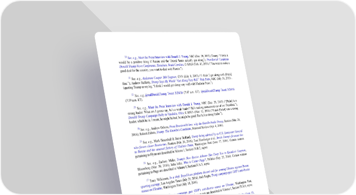 10 See, e.g., Meet the Press Interview with Donald J. Trump, NBC (Dec. 20, 2015) (Trump: “I think it would be a positive thing if Russia and the United States actually got along”); Presidential Candidate Donald Trump News Conference, Hanahan, South Carolina, C-SPAN (Feb. 15, 2016) (“You want to make a good deal for the country, you want to deal with Russia.”). 11 See, e.g., Anderson Cooper 360 Degrees, CNN (July 8, 2015) (“I think I get along with [Putin] fine.”); Andrew Rafferty, Trump Says He Would “Get Along Very Well” With Putin, NBC (July 30, 2015) . (quoting Trump as saying, “I think I would get along very well with Vladimir Putin.”). 12 See, e.g.,@realDonaldTrump Tweet 3/24/16 (7:47 a.m. ET); @realDonaldTrump Tweet 3/24/16 (7:59 a.m. ET). 13 See, e.g., Meet the Press Interview with Donald J. Trump, NBC (Dec. 20, 2015) (“[Putin] is a strong leader. What am I gonna say, he’s a weak leader? He’s making mincemeat out of our President.”); Donald Trump Campaign Rally in Vandalia, Ohio, C-SPAN (Mar. 12, 2016) (“I said [Putin] was a strong leader, which he is. I mean, he might be bad, he might be good. But he’s a strong leader.”). 14 See, e.g., Andrew Osborn, From Russia with love: why the Kremlin backs Trump, Reuters (Mar. 24, 2016); Robert Zubrin, Trump: The Kremlin’s Candidate, National Review (Apr. 4, 2016). 15 See, e.g., Mark Hosenball & Steve Holland, Trump being advised by ex-U.S. Lieutenant General who favors closer Russia ties, Reuters (Feb. 26, 2016); Tom Hamburger et al., Inside Trump’s financial ties to Russia and his unusual flattery of Vladimir Putin, Washington Post (June 17, 2016). Certain matters pertaining to Flynn are described in Volume I, Section IV.B.7, supra. 16 See, e.g., Zachary Mider, Trump’s New Russia Advisor Has Deep Ties to Kremlin’s Gazprom, Bloomberg (Mar. 30, 2016); Julia Iofee, Who is Carter Page?, Politico (Sep. 23, 2016). Certain matters pertaining to Page are described in Volume I, Section IV.A.3, supra. 17 Tracy Wilkinson, In a shift, Republican platform doesn’t call for arming Ukraine against Russia, spurring outrage, Los Angeles Times (July 21, 2016); Josh Rogin, Trump campaign guts GOP’s anti-Russia stance on Ukraine, Washington Post (July 18, 2016). 18 Josh Rogin, Trump campaign guts GOP’s anti-Russia stance on Ukraine, Washington Post, Opinions (July 18, 2016). The Republican Platform events are described in Volume I, Section IV.A.6, supra. 19 Bears in the Midst: Intrusion into the Democratic National Committee, CrowdStrike (June 15, 2016) (post originally appearing on June 14, 2016, according to records of the timing provided by CrowdStrike); Ellen Nakashima, Russian government hackers penetrated DNC, stole opposition research on Trump, Washington Post (June 14, 2016). 20 Tom Hamburger and Karen Tumulty, WikiLeaks releases thousands of documents about Clinton and internal deliberations, Washington Post (July 22, 2016). 21 Amber Phillips, Clinton campaign manager: Russians leaked Democrats’ emails to help Donald Trump, Washington Post (July 24, 2016). 22 David E. Sanger and Eric Schmitt, Spy Agency Consensus Grows That Russia Hacked D.N.C., New York Times (July 26, 2016).