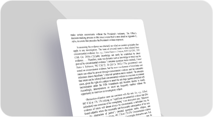 make certain assessments without the President’s testimony. The Office’s decision-making process on this issue is described in more detail in Appendix C, infra, in a note that precedes the President’s written responses. In assessing the evidence we obtained, we relied on common principles that apply in any investigation. The issue of criminal intent is often inferred from circumstantial evidence. See, e.g., United States v. Croteau, 819 F.3d 1293, 1305 (11th Cir. 2016) (“[G]uilty knowledge can rarely be established by direct evidence. . . . Therefore, mens rea elements such as knowledge or intent may be proved by circumstantial evidence.”) (internal quotation marks omitted); United States v. Robinson, 702 F.3d 22, 36 (2d Cir. 2012) (“The government’s case rested on circumstantial evidence, but the mens rea elements of knowledge and intent can often be proved through circumstantial evidence and the reasonable inferences drawn therefrom.”) (internal quotation marks omitted). The principle that intent can be inferred from circumstantial evidence is a necessity in criminal cases, given the right of a subject to assert his privilege against compelled self- incrimination under the Fifth Amendment and therefore decline to testify. Accordingly, determinations on intent are frequently reached without the opportunity to interview an investigatory subject. Obstruction-of-justice cases are consistent with this rule. See, e.g., Edlind, 887 F.3d at 174, 176 (relying on “significant circumstantial evidence that [the defendant] was conscious of her wrongdoing” in an obstruction case; “[b]ecause evidence of intent will almost always be circumstantial, a defendant may be found culpable where the reasonable and foreseeable consequences of her acts are the obstruction of justice”) (internal quotation marks, ellipses, and punctuation omitted); Quattrone, 441 F.3d at 173-174. Circumstantial evidence that illuminates intent may include a pattern of potentially obstructive acts. Fed. R. Evid. 404(b) (“Evidence of a crime, wrong, or other act . . . may be admissible . . . [to] prov[e] motive, opportunity, intent, preparation, plan, knowledge, identity, absence of mistake, or lack of accident.”); see, e.g., United States v. Frankhauser, 80 F.3d 641, 648-650 (1st Cir. 1996); United States v. Arnold, 773 F.2d 823, 832-834 (7th Cir. 1985); Cintolo, 818 F.2d at 1000. Credibility judgments may also be made based on objective facts and circumstantial evidence. Standard jury instructions highlight a variety of factors that are often relevant in assessing credibility. These include whether a witness had a reason not to tell the truth; whether the witness had a good memory; whether the witness had the opportunity to observe the events about which he