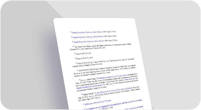 39 Donald Trump News Conference, Doral, Florida, C-SPAN (July 27, 2016). 40 Donald Trump News Conference, Doral, Florida, C-SPAN (July 27, 2016). 41 Donald Trump News Conference, Doral, Florida, C-SPAN (July 27, 2016). 42 The Trump Tower Moscow project and Trump’s involvement in it is discussed in detail in Volume I, Section IV.A.1, supra, and Volume II, Section II.K, infra. 43 Cohen 9/18/18 302, at 4. 44 Cohen 9/18/18 302, at 4-5. 45 Cohen 11/20/18 302, at 1; Cohen 9/18/18 302, at 3-5. The formation of the “party line” is described in greater detail in Volume II, Section II.K, infra. 46 DJTFP00004953 (8/8/16 Email, Gordon to Pchelyakov) (stating that “[t]hese days are not optimal for us, as we are busily knocking down a stream of false media stories”). The invitation and Gordon’s response are discussed in Volume I, Section IV.A.7.a, supra. 47 See, e.g., Amber Phillips, Paul Manafort’s complicated ties to Ukraine, explained, Washington Post (Aug. 19, 2016) (“There were also a wave of fresh headlines dealing with investigations into [Manafort’s] ties to a pro-Russian political party in Ukraine.”); Tom Winter & Ken Dilanian, Donald Trump Aide Paul Manafort Scrutinized for Russian Business Ties, NBC (Aug. 18, 2016). Relevant events involving Manafort are discussed in Volume I, Section IV.A.8, supra. 48 Michael Isikoff, U.S. intel officials probe ties between Trump adviser and Kremlin, Yahoo News (Sep. 23, 2016); see, e.g., 9/25/16 Email, Hicks to Conway & Bannon; 9/23/16 Email, J. Miller to Bannon & S. Miller; Page 3/16/17 302, at 2. 49 @WikiLeaks 10/7/16 (4:32 p.m. ET) Tweet. 50 Joint Statement from the Department Of Homeland Security and Office of the Director of National Intelligence on Election Security, DHS (Oct. 7, 2016). 51 Joint Statement from the Department Of Homeland Security and Office of the Director of National Intelligence on Election Security, DHS (Oct. 7, 2016). 52 John Wagner & Anne Gearan, Clinton campaign chairman ties email hack to Russians, suggests Trump had early warning, Washington Post (Oct. 11, 2016). 53 Louis Nelson, Pence denies Trump camp in cahoots with WikiLeaks, Politico (Oct. 14, 2016). 54 Ivan Nechepurenko, Russian Officials Were in Contact With Trump Allies, Diplomat Says, New York Times (Nov. 10, 2016) (quoting Russian Deputy Foreign Minister Sergey Ryabkov saying, “[t]here were contacts” and “I cannot say that all, but a number of them maintained contacts with Russian representatives”); Jim Heintz & Matthew Lee, Russia eyes better ties with Trump; says contacts underway, Associated Press (Nov. 11, 2016) (quoting Ryabkov saying, “I don’t say that all of them, but a whole array of them supported contacts with Russian representatives”).