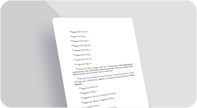 337 Pompeo 6/28/17 302, at 1-3. 338 Coats 6/14/17 302, at 3. 339 Dempsey 6/14/17 302, at 2. 340 Dempsey 6/14/17 302, at 2-3. 341 Dempsey 6/14/17 302, at 3. 342 Gistaro 6/14/17 302, at 2. 343 Culver 6/14/17 302, at 2-3. 344 Coats 6/14/17 302, at 4. 345 Coats 6/14/17 302, at 4; Dempsey 6/14/17 302, at 3 (Coats relayed that the President had asked several times what Coats could do to help “get [the investigation] done,” and Coats had repeatedly told the President that fastest way to “get it done” was to let it run its course). 346 Hearing on Foreign Intelligence Surveillance Act Before the Senate Select Intelligence Committee, th 115 Cong. (June 7, 2017) (CQ Cong. Transcripts, at 25) (testimony by Daniel Coats, Director of National Intelligence). 347 Rogers 6/12/17 302, at 3-4. 348 Rogers 6/12/17 302, at 4. 349 Ledgett 6/13/17 302, at 1-2; see Rogers 6/12/17 302, at 4. 350 Rogers 6/12/17 302, at 4-5; Ledgett 6/13/17 302, at 2. 351 Ledgett 6/13/17 302, at 2. 352 Ledgett 6/13/17 302, at 2-3; Rogers 6/12/17 302, at 4. 353 Rogers 6/12/17 302, at 5; Ledgett 6/13/17 302, at 2. 354 Hearing on Foreign Intelligence Surveillance Act Before the Senate Select Intelligence Committee, th 115 Cong. (June 7, 2017) (CQ Cong. Transcripts, at 20) (testimony by Admiral Michael Rogers, Director of the National Security Agency). 355 Gistaro 6/14/17 302, at 1,3; Pompeo 6/28/17 302, at 2-3. 356 Gistaro 6/14/17 302, at 1. 357 Pompeo 6/28/17 302, at 2. 358 Rogers 6/12/17 302, at 6.
