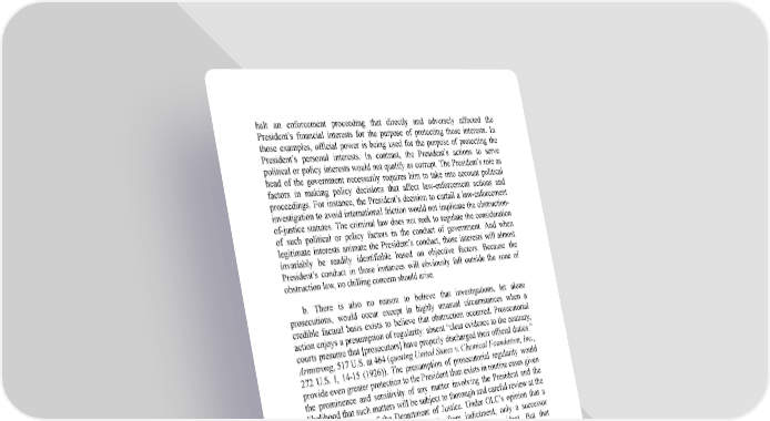 halt an enforcement proceeding that directly and adversely affected the President’s financial interests for the purpose of protecting those interests. In those examples, official power is being used for the purpose of protecting the President’s personal interests. In contrast, the President’s actions to serve political or policy interests would not qualify as corrupt. The President’s role as head of the government necessarily requires him to take into account political factors in making policy decisions that affect law-enforcement actions and proceedings. For instance, the President’s decision to curtail a law-enforcement investigation to avoid international friction would not implicate the obstruction- of-justice statutes. The criminal law does not seek to regulate the consideration of such political or policy factors in the conduct of government. And when legitimate interests animate the President’s conduct, those interests will almost invariably be readily identifiable based on objective factors. Because the President’s conduct in those instances will obviously fall outside the zone of obstruction law, no chilling concern should arise. b. There is also no reason to believe that investigations, let alone prosecutions, would occur except in highly unusual circumstances when a credible factual basis exists to believe that obstruction occurred. Prosecutorial action enjoys a presumption of regularity: absent “clear evidence to the contrary, courts presume that [prosecutors] have properly discharged their official duties.” Armstrong, 517 U.S. at 464 (quoting United States v. Chemical Foundation, Inc., 272 U.S. I, 14-15 (1926)). The presumption of prosecutorial regularity would provide even greater protection to the President than exists in routine cases given the prominence and sensitivity of any matter involving the President and the likelihood that such matters will be subject to thorough and careful review at the most senior levels of the Department of Justice. Under OLC’s opinion that a sitting President is entitled to immunity from indictment, only a successor Administration would be able to prosecute a former President. But that consideration does not suggest that a President would have any basis for fearing abusive investigations or prosecutions after leaving office. There are “obvious political checks” against initiating a baseless investigation or prosecution of a former President. See Administrator of General Services, 433 U.S. at 448 (considering political checks in separation-of-powers analysis). And the Attorney General holds “the power to conduct the criminal litigation of the United States Government,” United States v. Nixon, 418 U.S. at 694 (citing 28 U.S.C. § 516), which provides a strong institutional safeguard against politicized 1092 investigations or prosecutions.